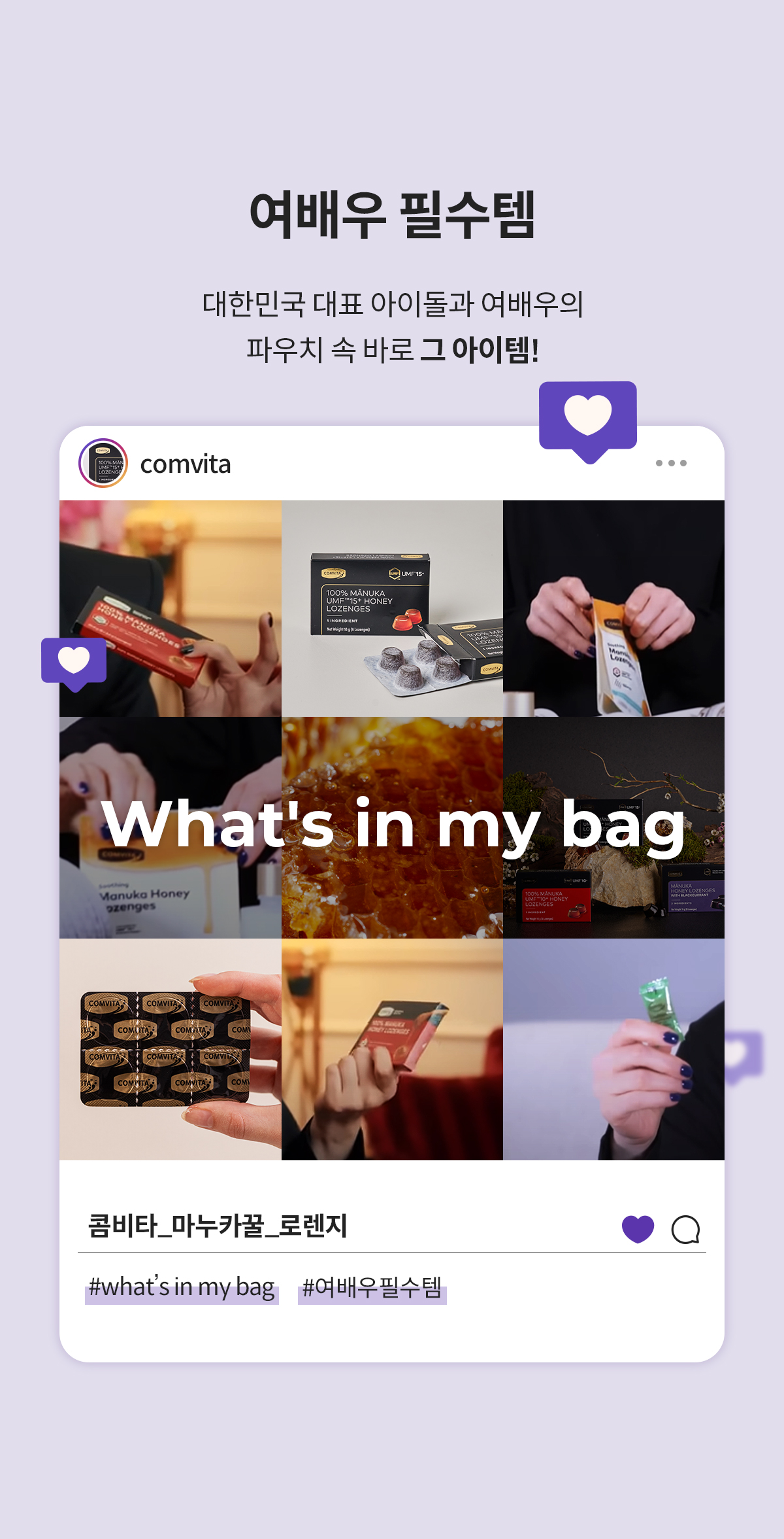 콤비타 퓨어 마누카꿀 로젠지 블랙커런트 촬영