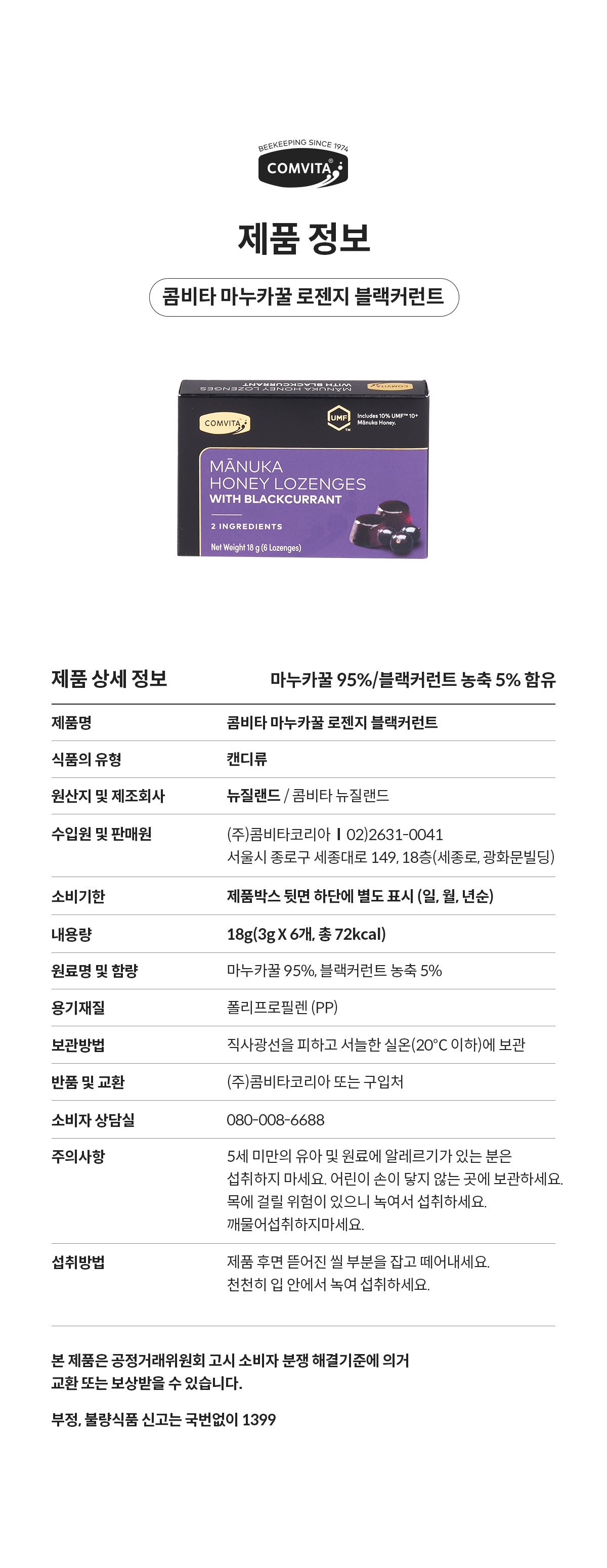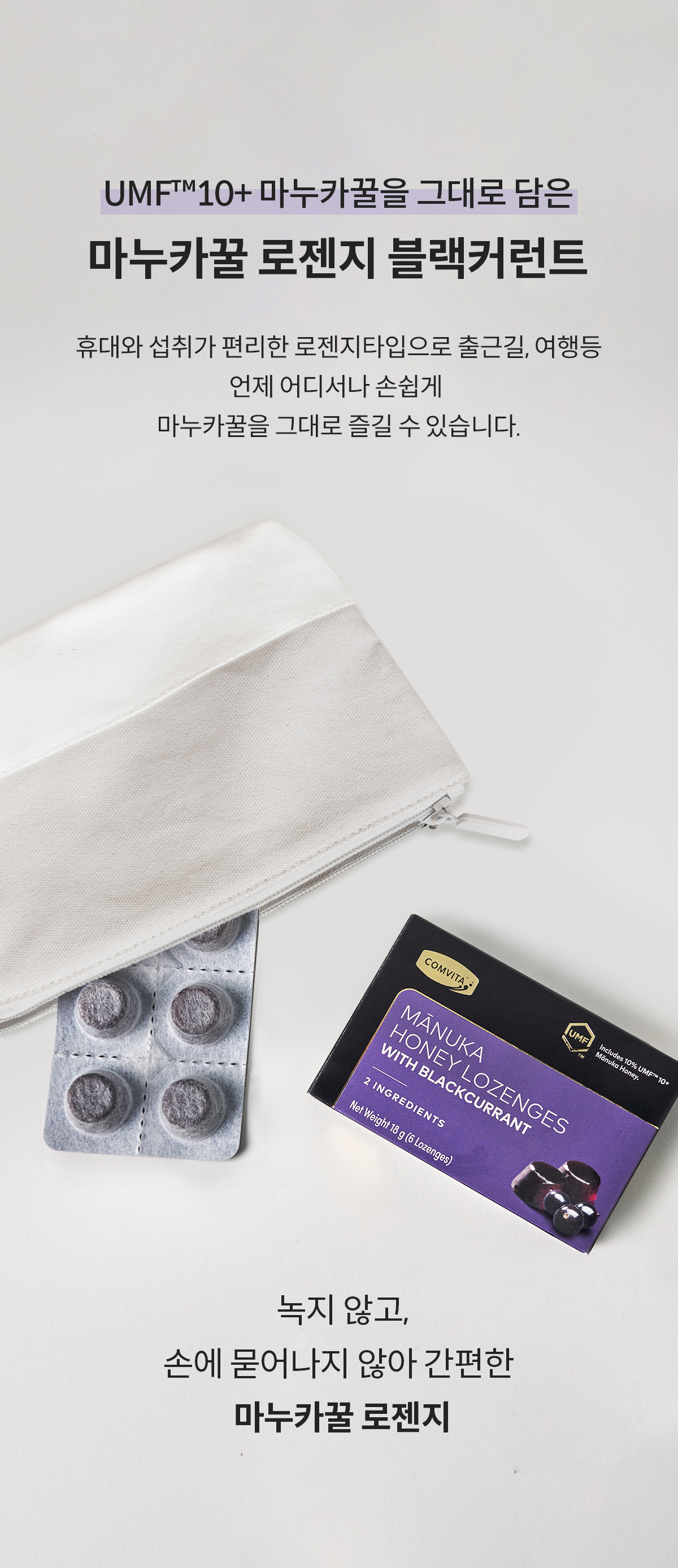 콤비타 퓨어 마누카꿀 로젠지 블랙커런트 상세페이지